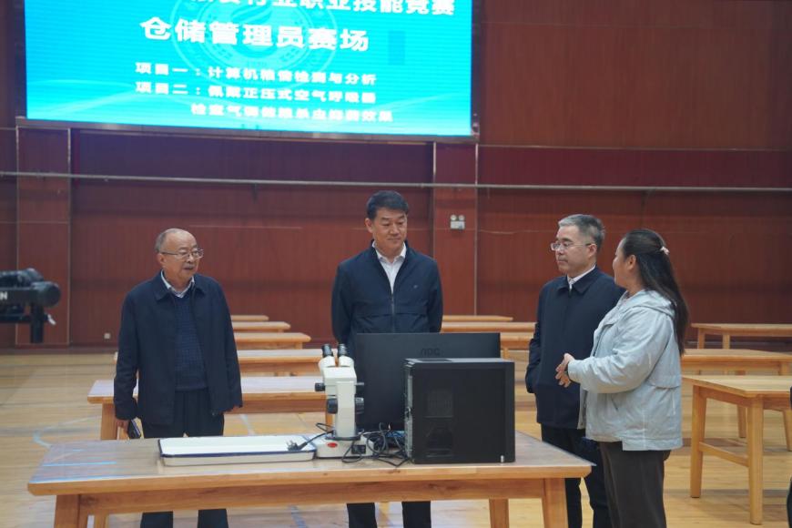 10月12日,国家粮食和物资储备局副局长王宏一行莅临我校龙湖校区,就我校承办的第七届全国粮食行业职业技能竞赛的筹备情况进行实地调研考察,并主持召开座谈会。中国粮食研究培训中心副主任(主持工作)唐成、副主任程继伟,河南省粮食和物资储备局局长张弓、副局长陈晓鹏等领导,及我校全体在郑校领导参加调研和座谈。