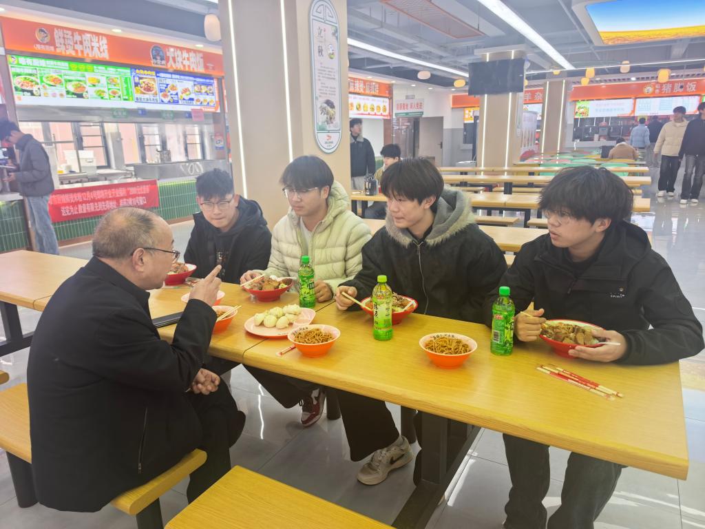 调研中,李国锋与就餐学生围坐交谈,细致询问大家日常学习生活中的点滴情况,贴心了解同学们对餐厅饭菜口味、品类搭配、价格实惠度、就餐环境舒适度,以及餐饮服务细节等方面的真实感受和意见建议,认真倾听同学们的就餐需求。他叮嘱同学们要养成规律作息、健康饮食的良好习惯,在认真钻研学业的同时,注重身心全面发展,以饱满的精神状态投入学习和生活,脚踏实地提升综合素养,努力成长为高素质技术技能人才。