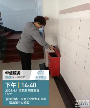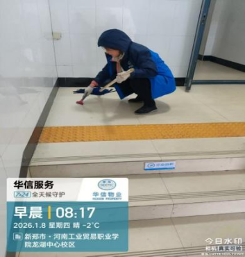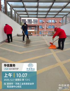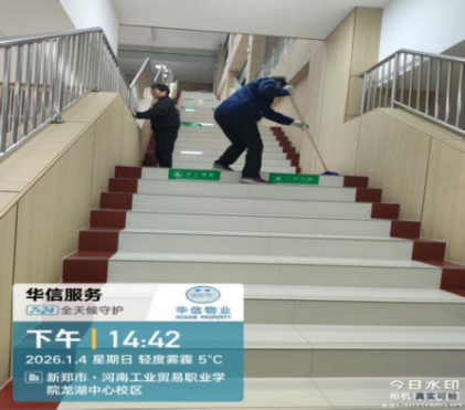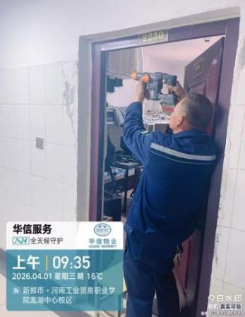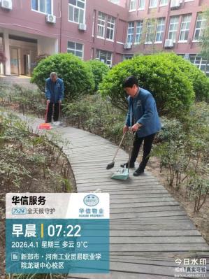 自华信物业正式入驻河南省工业贸易职业学院龙湖校区以来,始终紧扣学校后勤处保障工作要求,以师生满意为核心、校园安全为底线、服务提质为初心目标。在学校后勤处的悉心指导下,华信物业服务团队快速完成人员适配、工作对接与服务落地,秉持“安全为先、服务为本、师生至上”的理念,全面推进龙湖校园整体保洁、工程维修、宿舍管理、绿化养护等各项物业服务工作,稳步提升校园后勤服务品质,全力保障学校教学、科研及师生生活有序开展。现将入驻数月以来的阶段性工作成果汇报如下: