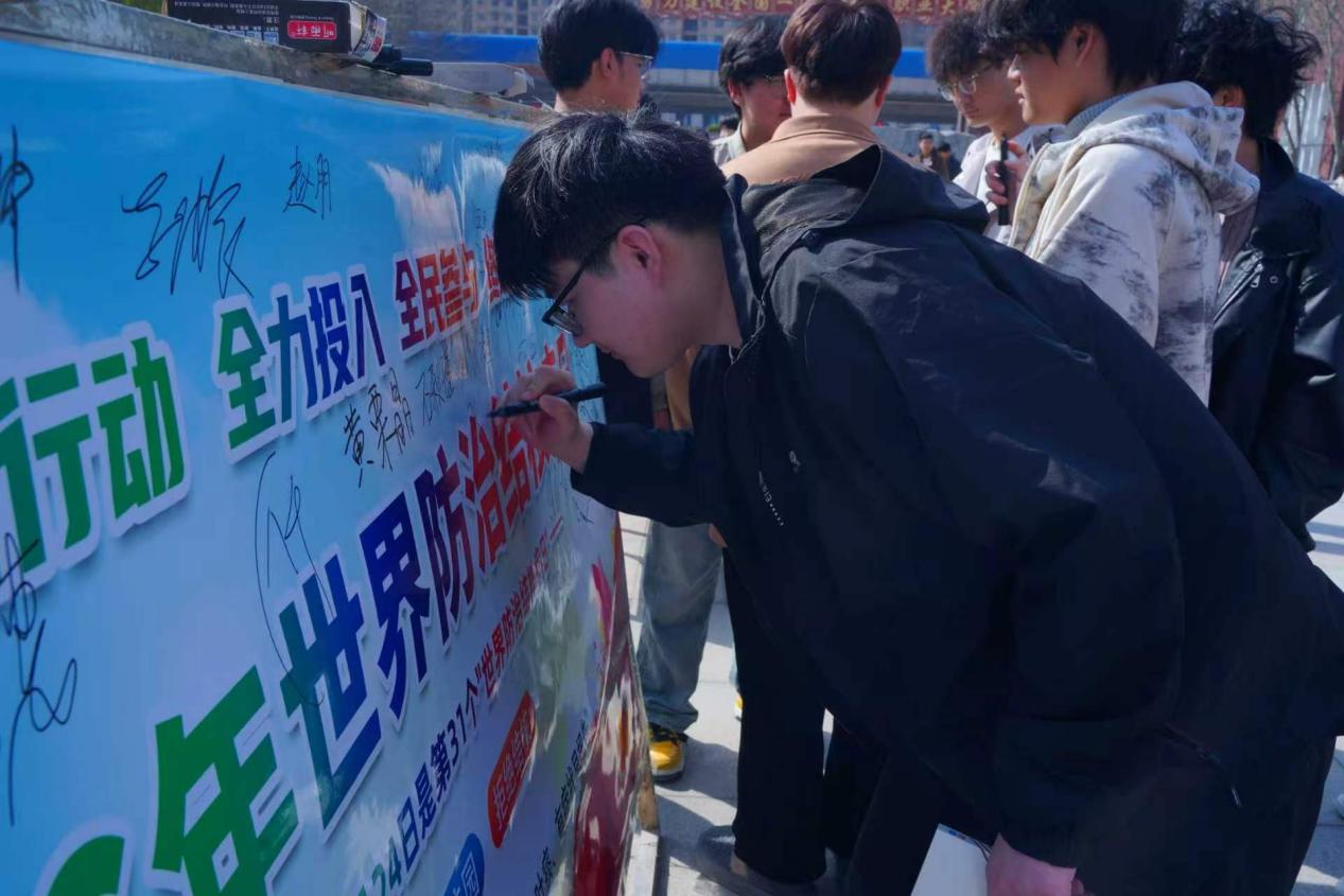 健康咨询点前,医护人员针对春季传染病防治要点为师生提供专业解答,通过一对一咨询、症状自查指导等互动形式,有效缓解了师生对传染病的担忧,现场咨询氛围活跃有序。签名承诺环节中,师生们踊跃在“全面行动、全力投入、全民参与、终结结核”主题海报上签名,以实际行动践行健康责任承诺。