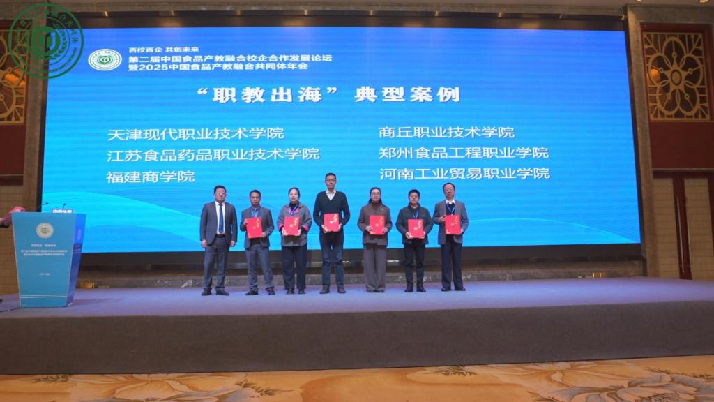 会上,我校被增选为中国食品产教融合共同体副理事长单位。在共同体组织的“中国食品产教融合典型案例”征集中,我校报送的产教融合优秀案例成功入选“产教融合”典型案例及“职教出海”典型案例。