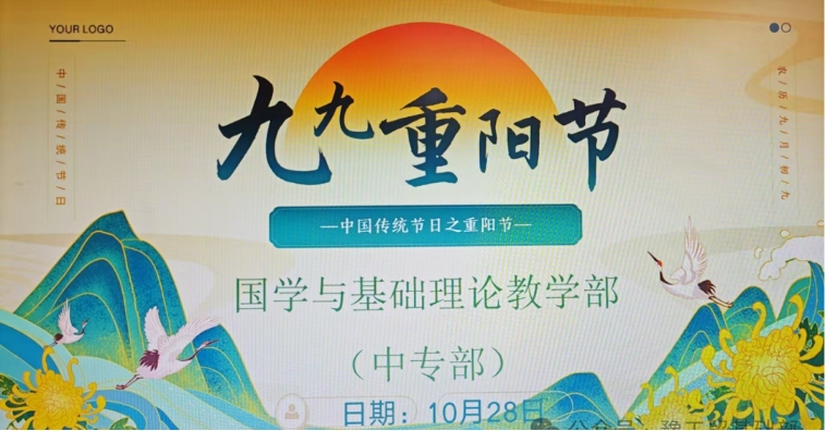 秋阳杲杲,叠翠流金,当丹桂的芬芳裹挟着菊花的清雅沁入心脾,一年一度的重阳佳节已悄然而至。为弘扬中华优秀传统文化,传承尊老敬老的传统美德,国学与基础理论教学部(中专部)于2025年10月28日下午在行政楼B103举办了“重阳雅韵·诗传温情”主题诗词朗诵活动。