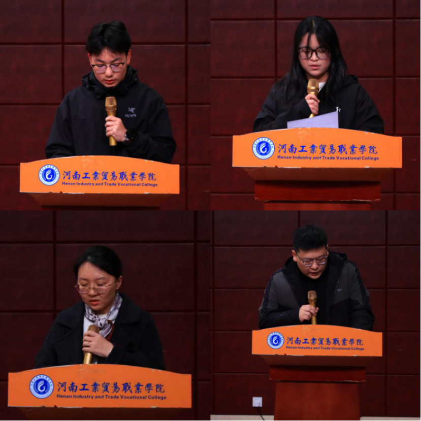 先进个人代表邓雨馨和司润飞同学上台发言。她们深情感谢指导老师的悉心栽培与学校的精心培养,表示成绩的取得离不开个人的努力,更源于团队的支持与学校的平台。她们号召全体同学珍惜时光、勇于争先,为学校发展贡献青春力量。指导老师代表程玲和闫峙霖随后分享了备赛与参赛的艰辛历程,通过他们的生动讲述,让同学们深刻体会到荣誉背后的汗水与坚持。