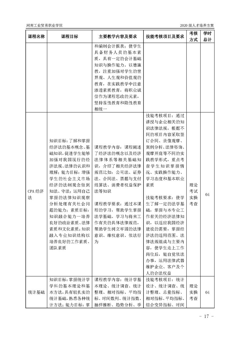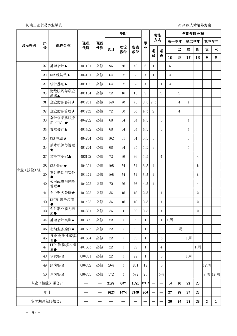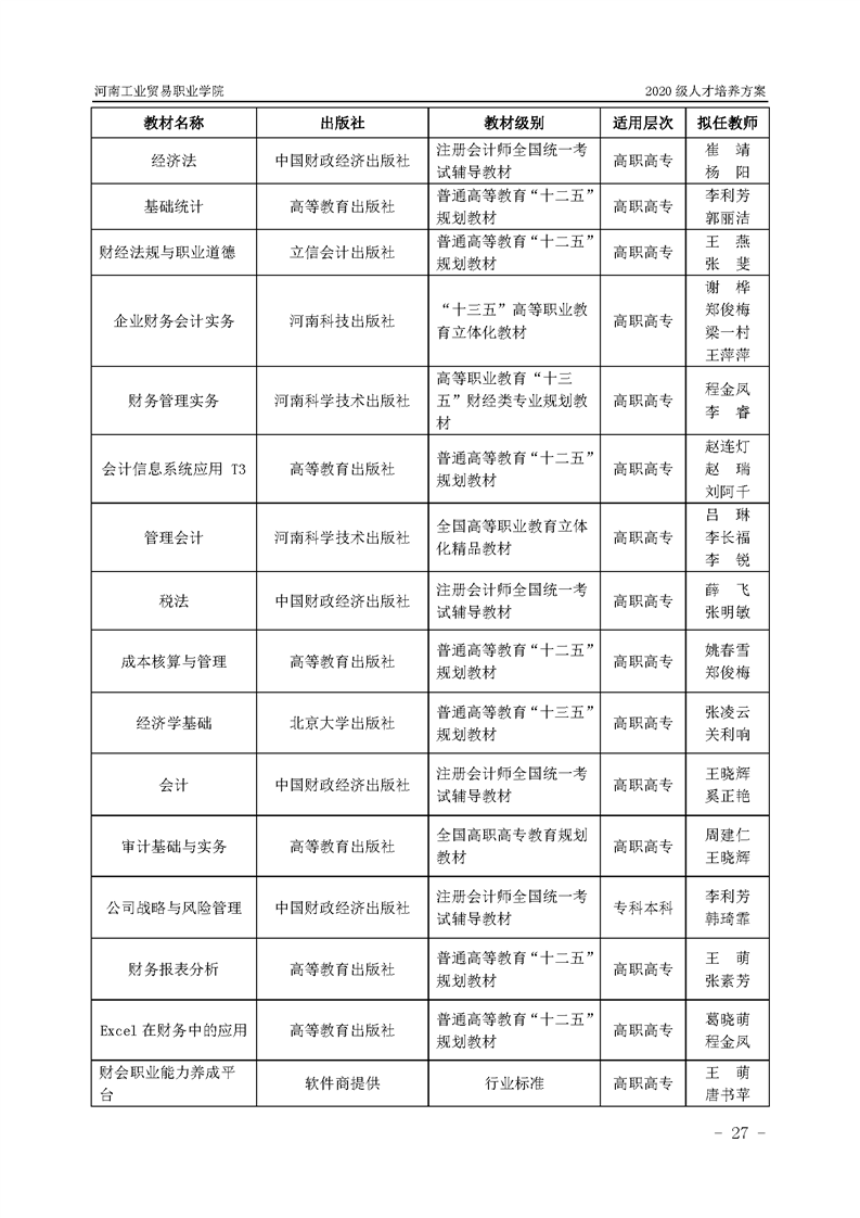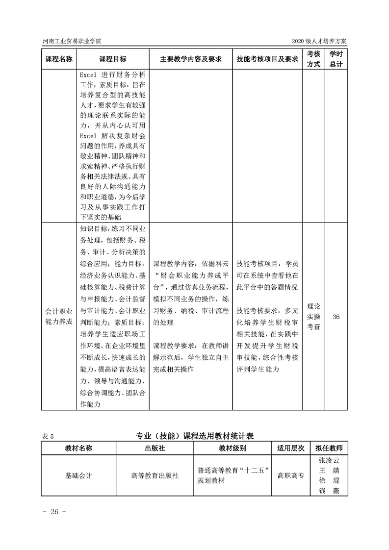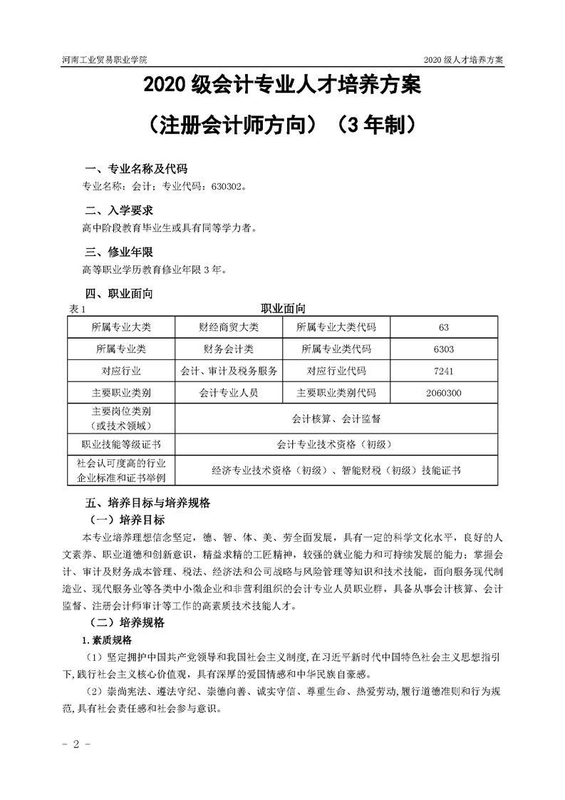 26.2020级会计专业(注册会计师方向)(3年制)人才培养方案