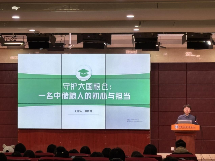 11 月 21 日,“守护大国粮仓:一名中储粮人的初心与担当” 主题分享会率先启幕。学校粮食学院 2007 届优秀校友张景景受邀返校,以 18 年扎根粮食行业的坚守历程为蓝本,生动诠释了 “粮安卫士” 的责任与担当。分享中,她结合一线工作经历,从粮食收购、仓储管理到质量管控,用详实案例与真挚感悟,为师生们展现了粮食人 “宁流千滴汗,不损一粒粮” 的硬核坚守,传递了新时代粮食工作者的初心使命,引发全场热烈共鸣。