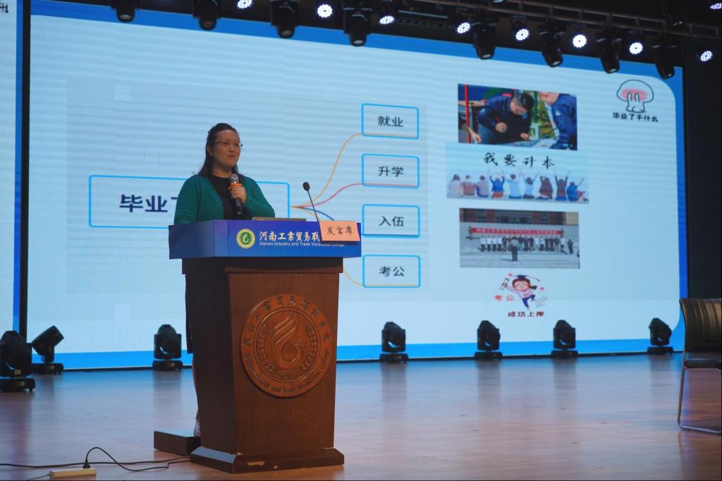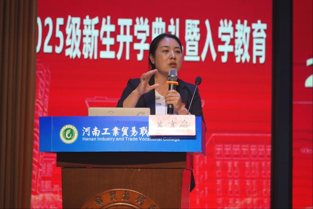 学工办主任(团总支书记)马可就学生安全教育、心理健康、职业生涯发展、学生管理制度等方面进行了讲解,引导新生树立正确的价值观和行为准则,关注自身身心健康。