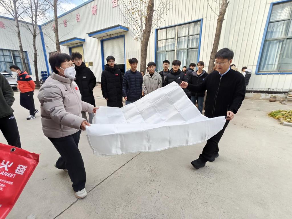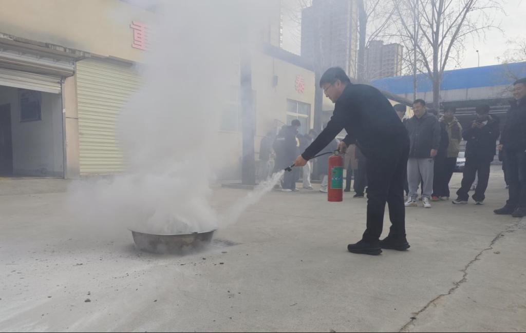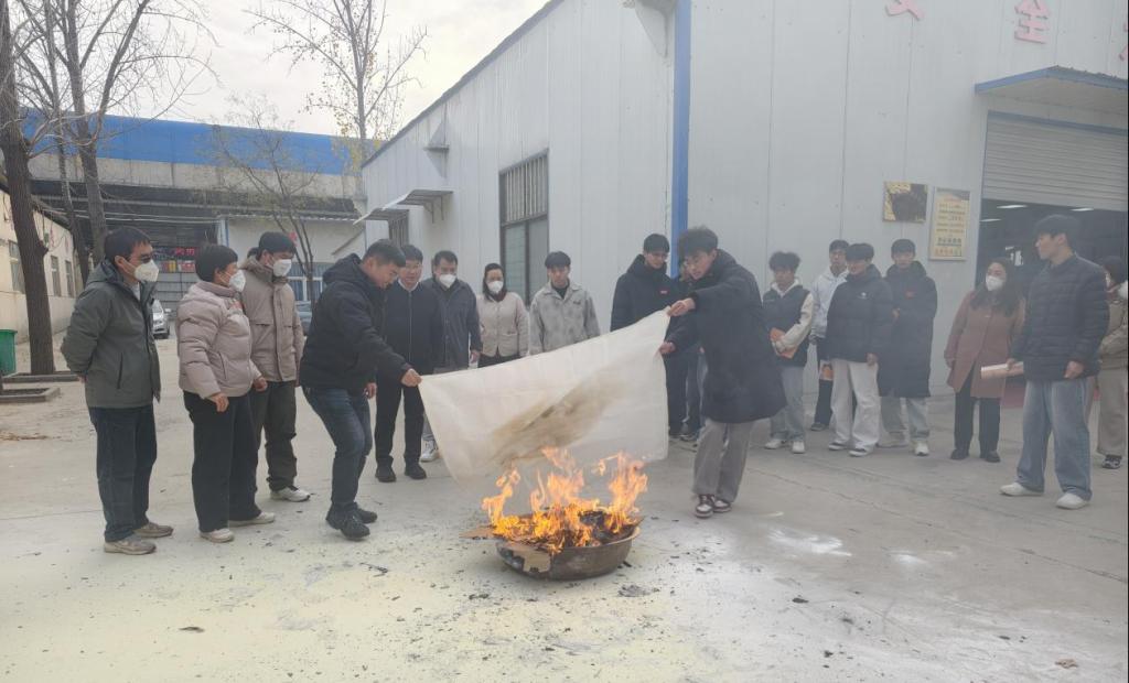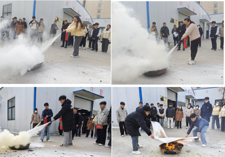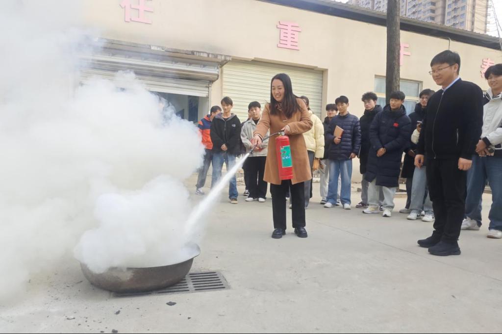 随后在实训工厂,参训师生利用现场消防器材开展了灭火实战演练。苏超杰院长亲自示范了灭火器“提、拔、握、压”的操作步骤和灭火毯的使用方法,师生们分组逐一进行实操练习,专业教师在旁辅助指导,确保每位参与者都能熟练掌握基本消防技能。