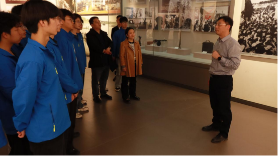 在一幅军民同心修挖战壕的老照片前,马克思主义学院副院长路标驻足讲解。他以长征时期军民鱼水深情为引,讲述了不同历史时期中原儿女在党的领导下为民族独立与解放而进行的顽强斗争,引导学生理解长征精神不仅是历史篇章,更是激励一代代人砥砺前行的精神力量。