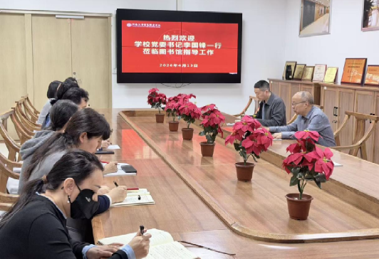 2026年4月13日下午,校党委书记李国峰一行莅临图书馆调研指导工作。图书馆馆长孙长新、副馆长王芳、雷琳及相关部门负责人参加座谈。