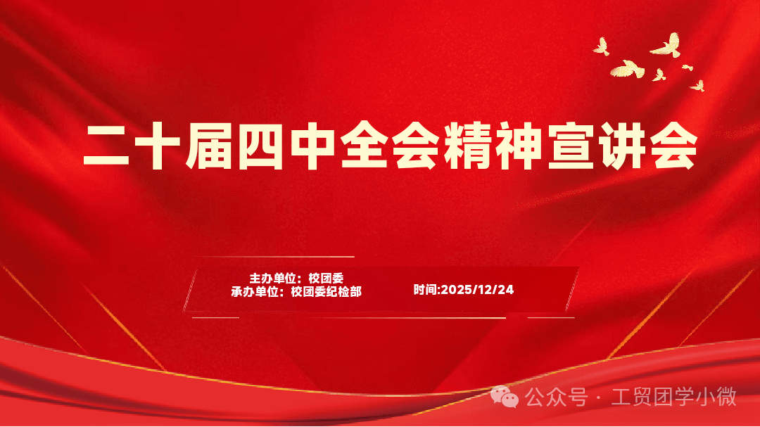 为深入学习贯彻党的二十届四中全会精神,引导青年学子将个人发展与国家建设紧密结合,12月24日下午,河南工业贸易职业学院校团委纪检部在三号教学楼3101教室举办党的二十届四中全会精神宣讲会,各二级学院学生代表齐聚现场,共同聆听全会精神的深刻解读。