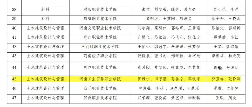 2026 年 1 月 14 日,河南省教育厅公布 2025 年河南省职业院校技能大赛获奖结果。我院罗雅宁、田子涵、邓轶菲、孙佳宁四名同学,在郭玉格、张盼盼两位辅导教师的悉心指导下,凭借扎实的专业功底、精准的实操能力与沉稳的现场发挥,在土木建筑设计与管理赛项中脱颖而出,斩获银奖,充分彰显了我院土木建筑相关专业的教学实力与人才培养的丰硕成果。