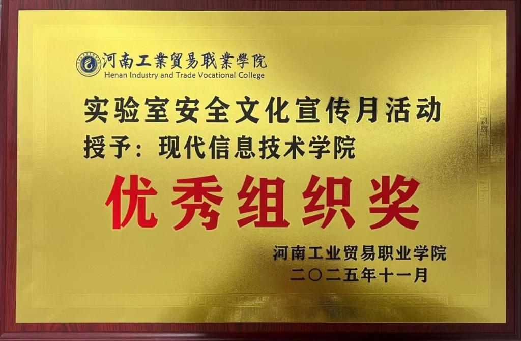 近日,2025年度实验室安全文化宣传月活动表彰结果正式揭晓,现代信息技术学院凭借扎实的组织工作、创新的活动形式与显著的育人成效,成功斩获“优秀组织奖”殊荣!这是学校对我院实验室安全管理工作的高度认可,更是全院师生共同筑牢安全防线的生动见证。