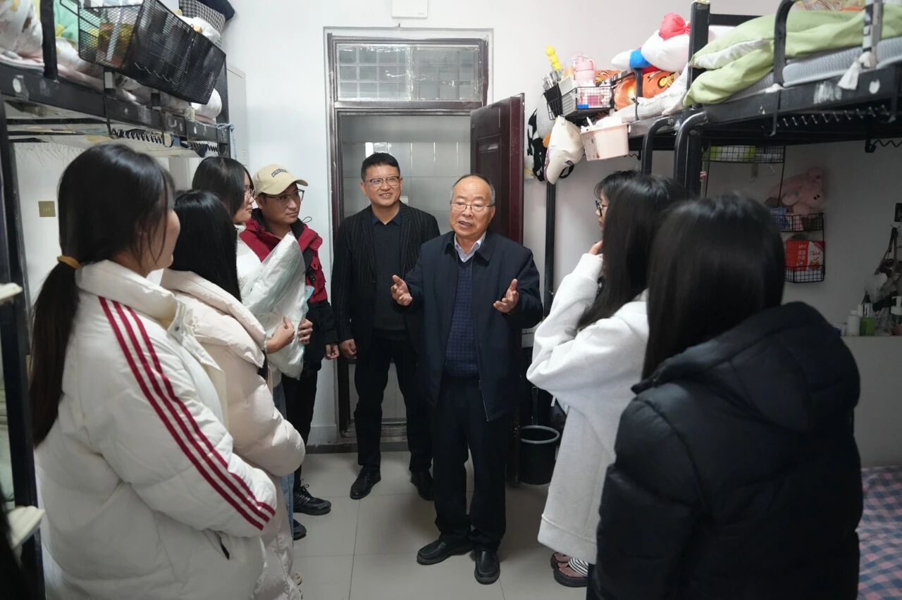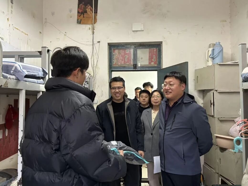 李国锋、曹利强一行走访了家庭经济困难学生宿舍,将崭新的保暖棉衣发放到受助学子手中,并亲切慰问他们的住宿供暖、饮食起居和学业进展,耐心倾听其学习生活中的困难与需求,暖心叮嘱同学们做好冬季防寒、保重身心健康。同时鼓励同学们将学校关怀化为学习动力,心怀感恩、砥砺前行,在寒冬中磨砺意志,在温暖中奋发成长。