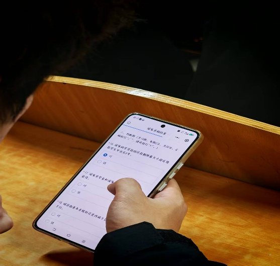 本次竞赛采用线上答题的形式,在微信小程序“问卷星”上同学们以极佳状态展现了学习成果与青春风貌。屏幕两端,大家自觉端正坐姿,眼神专注而坚定,指尖在键盘上有序敲击,用严谨态度对待每一道考题。