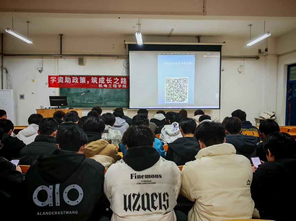 为深入贯彻落实国家关于家庭经济困难学生资助政策,进一步加大资助育人工作力度,提升资助政策宣传的广度与深度,切实增强我院学生的获得感、幸福感与安全感,机电工程学院于2025年11月19日在3号楼教学楼成功举办了以“学资助知识,筑成长之路”为主题的国家资助政策知识竞赛。本次竞赛旨在通过以赛促学、以学促知、以知促行的方式,全面检验和提升学生对国家各项资助政策的了解程度,确保国家这项重要的惠民工程深入人心、落到实处,助力广大学子尤其是家庭经济困难学生无忧求学、成长成才。