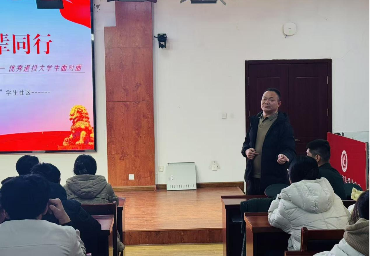 为持续搭建优秀学子交流平台,发挥榜样示范引领作用,帮助同学们明晰入伍政策、了解军营生活、规划青春道路,12月25日下午,我校在招聘会议室成功举办了“榜样引航 朋辈同行”系列活动第三期主题活动。本次活动以“以青春赴军营,以热血践初心”为主题,特邀三位优秀退伍大学生分享军旅生涯与成长感悟,活动吸引了近80余名同学积极参与。