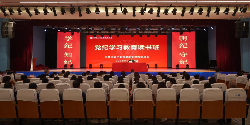 4月29日至30日,学校在龙湖校区学术报告厅举办党纪学习教育读书班暨党委理论学习中心组(扩大)专题学习会,深入学习贯彻习近平总书记关于党纪学习教育的重要讲话和重要指示精神,按照中央有关决策部署和省委工作要求,学习新修订的《中国共产党纪律处分条例》。校党委书记李国锋主持开班仪式并作辅导报告,河南财经政法大学党委巡察办副主任林万成作专题讲座。党委理论学习中心组成员、全体党员参加读书班。
