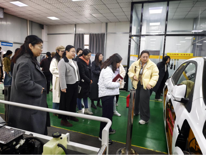 活动最后,全体人员实地参观了学院实训车间。汽车工程学院副院长田萌系统讲解了实训平台建设、教学设施配置及专业育人特色,帮助思政课教师直观了解汽车专业的实践教学与育人场景,为推动课程思政与专业教育的融合提供了生动案例。