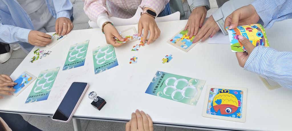 作为运动会的收官之作,“元气彩光欢乐派对”吸引了众多同学热情参与。派对设置了五项趣味心理体验项目——卡片记忆、彩色涂鸦、拼图风暴、观颜曰色、玲珑竞速,让同学们在轻松愉悦的氛围中锻炼专注力、创造力与动手能力。每完成一个项目即可获得相应积分,集满5分便可参与抽奖。活动现场欢声笑语不断,处处洋溢着蓬勃的青春活力。
