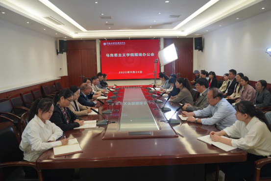 9月24日,学校党委书记李国锋深入马克思主义学院召开现场办公会,听取思政课建设工作汇报,协调解决实际问题。马克思主义学院全体教师参加会议。