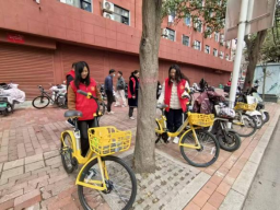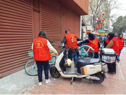 活动中,志愿者们利用午休时间,对学校周边散乱停放的共享单车与电动车进行了集中整理。大家不畏劳累,细心将车辆摆放整齐,并引导过往市民规范停车,以实际行动优化校园周边出行秩序,传递文明共享的理念。