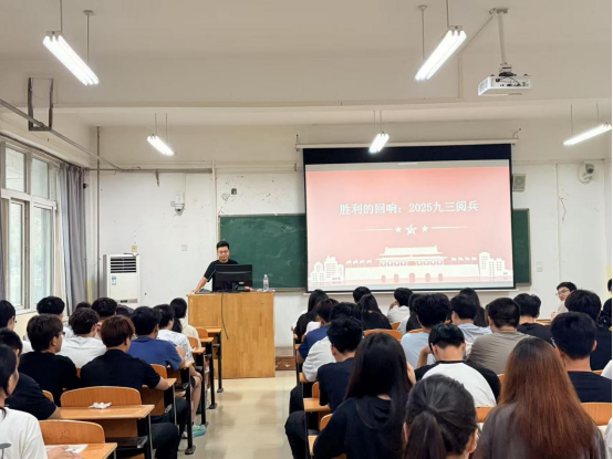 为落实高校思政课立德树人根本任务,纪念中国人民抗日战争暨世界反法西斯战争胜利80周年,马克思主义学院将伟大抗战精神融入秋季学期“开学思政第一课”,引导广大师生深刻铭记历史、缅怀革命先烈、珍视和平环境、勇担时代使命。