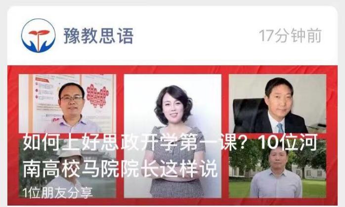 8月26日,靳翠梅应河南省教育厅思政处“豫教思语”约稿,作为河南10位高校马克思主义学院院长之一,就如何“把灾难当教材,与祖国共成长”,做好青年学子的思想引领,上好思政开学第一课谈了自己的观点。