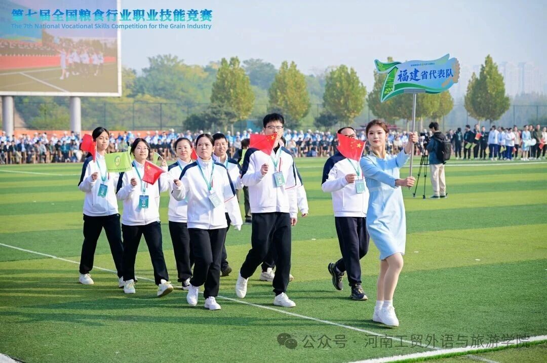 2025年11月4日,第七届全国粮食行业职业技能竞赛在我校隆重开幕。在这场高规格的全国性盛事中,外语与旅游学院的师生和志愿者们,用专业的素养与青春的热情,成为了赛场内外一道靓丽的风景线,为赛事的顺利举行提供了坚实保障。