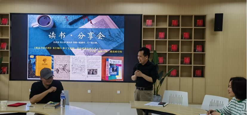 与书为友,以书为鉴,让一缕书香伴你我同行。5月16日下午,由校图书馆举办的读书分享会在图书馆二楼思政空间举行。活动结合图书馆阅读推广活动,以“我阅读 我分享 我快乐”为主题。本次读书分享会由艺术设计学院王飞老师主讲。
