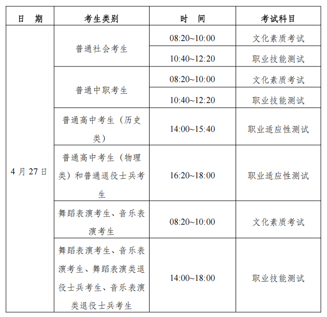 针对普通高中考生和普通退役士兵考生:职业适应性测试以笔试方式进行,重点考查考生的专业素养、科学素质、职业潜能和职业倾向。