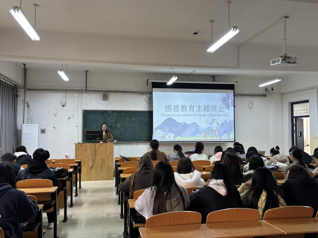 感恩教育活动以"感恩于心、外化于行"为主题,在班会上,学生们积极分享自己与家人、老师、同学之间的暖心故事,表达对国家资助政策、学校培养及身边人关怀的感恩之情,营造了知恩、感恩、报恩的浓厚氛围。