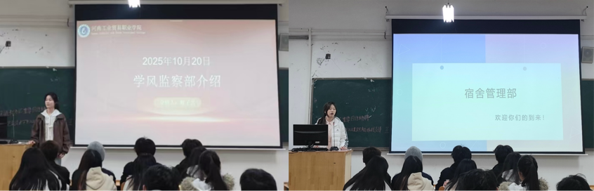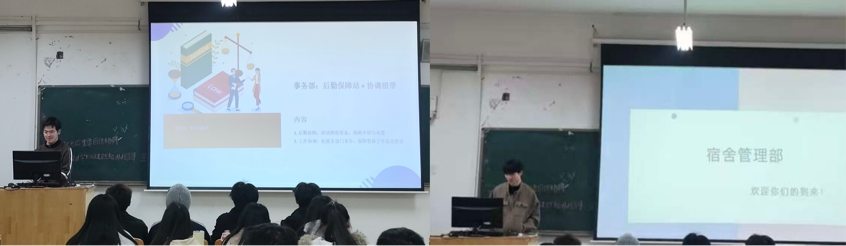 作为学生社区服务的四大核心力量,学风监察部、宿舍管理部、学生事务部、网络宣传部的负责人依次上台亮相。他们详细介绍了各部门的工作内容与意义,让新生们直观了解各部门的运作模式;同时,负责人代表各部门对25级新生的加入表示热烈欢迎与期待,期待新生们为部门注入新活力、创造新价值。