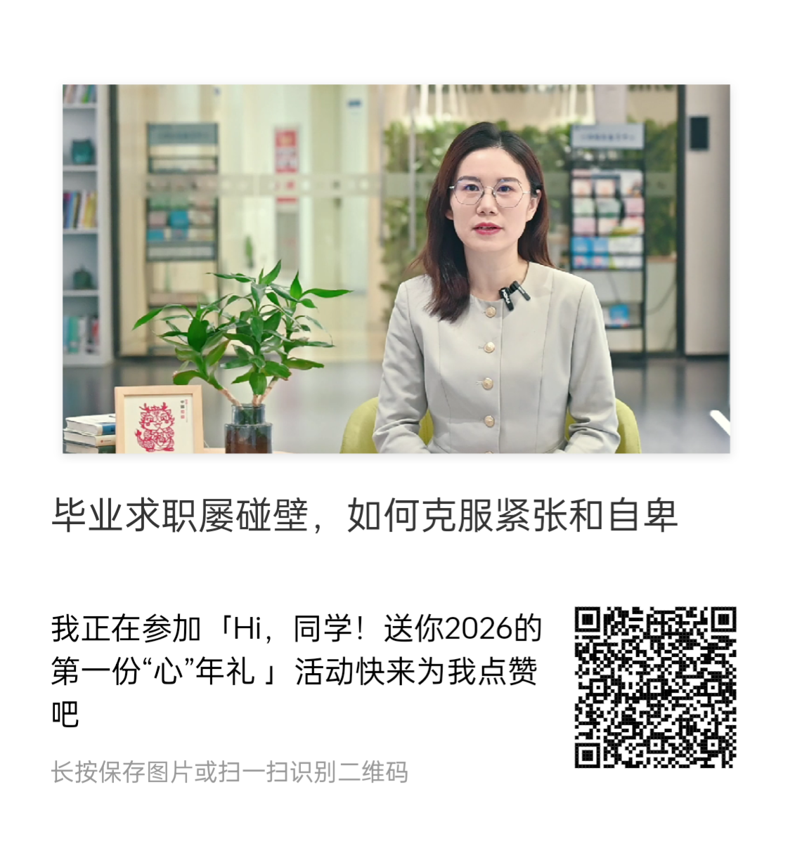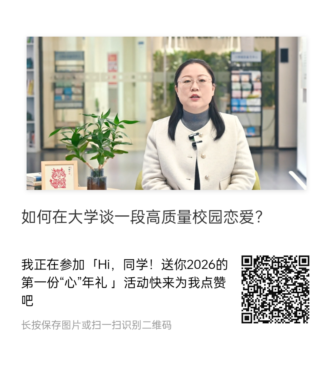 同学你好!2026年伊始,20余位心理老师为你准备了一份特别的“成长诗笺”。TA们将以专业与温暖,为你解答学业、人际、就业、家庭等成长困惑,陪你新年焕新,遇见更从容明亮的自己。一起来看看工贸心理老师给你的指导。