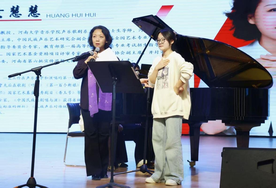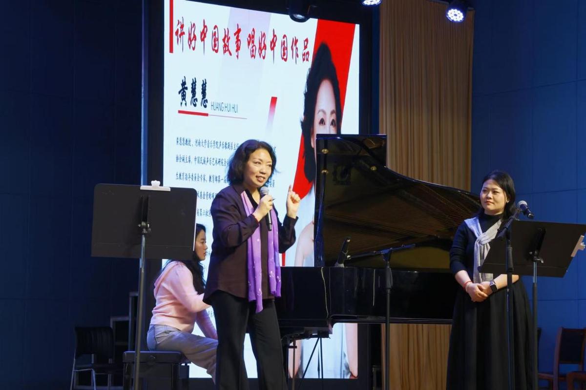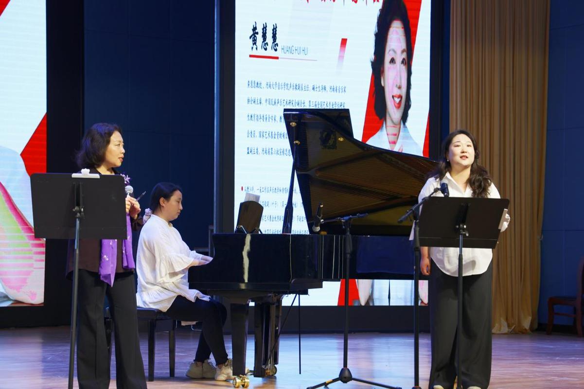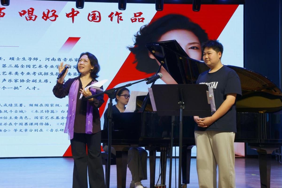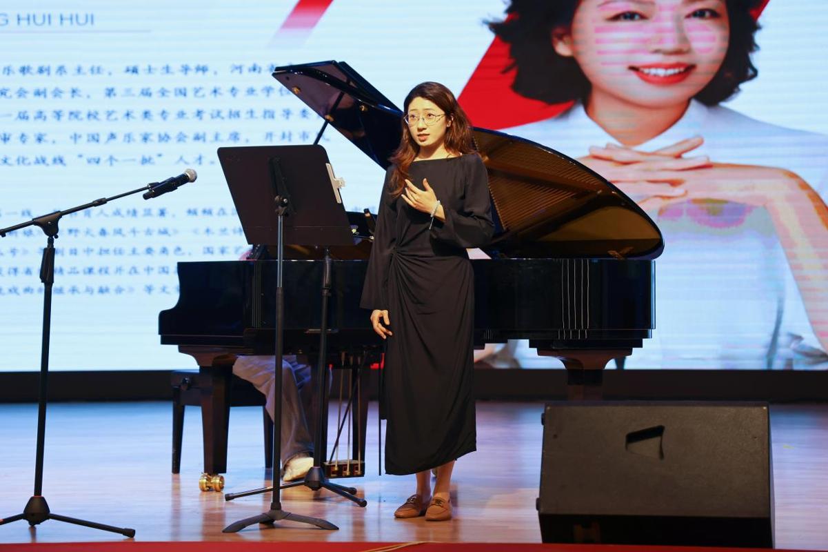 为进一步提升音乐舞蹈学院专业建设水平与人才培养质量。我院特邀河南大学音乐学院声歌系主任、硕士生导师、河南省音乐家协会副主席、中国民族声乐艺术研究会副会长黄慧慧教授,4月10日下午,在龙湖校区报告厅成功举办“讲好中国故事·唱好中国作品”专题声乐讲座。音乐舞蹈学院院长李晖、副院长李晓莹、全体声乐教师出席本次活动。